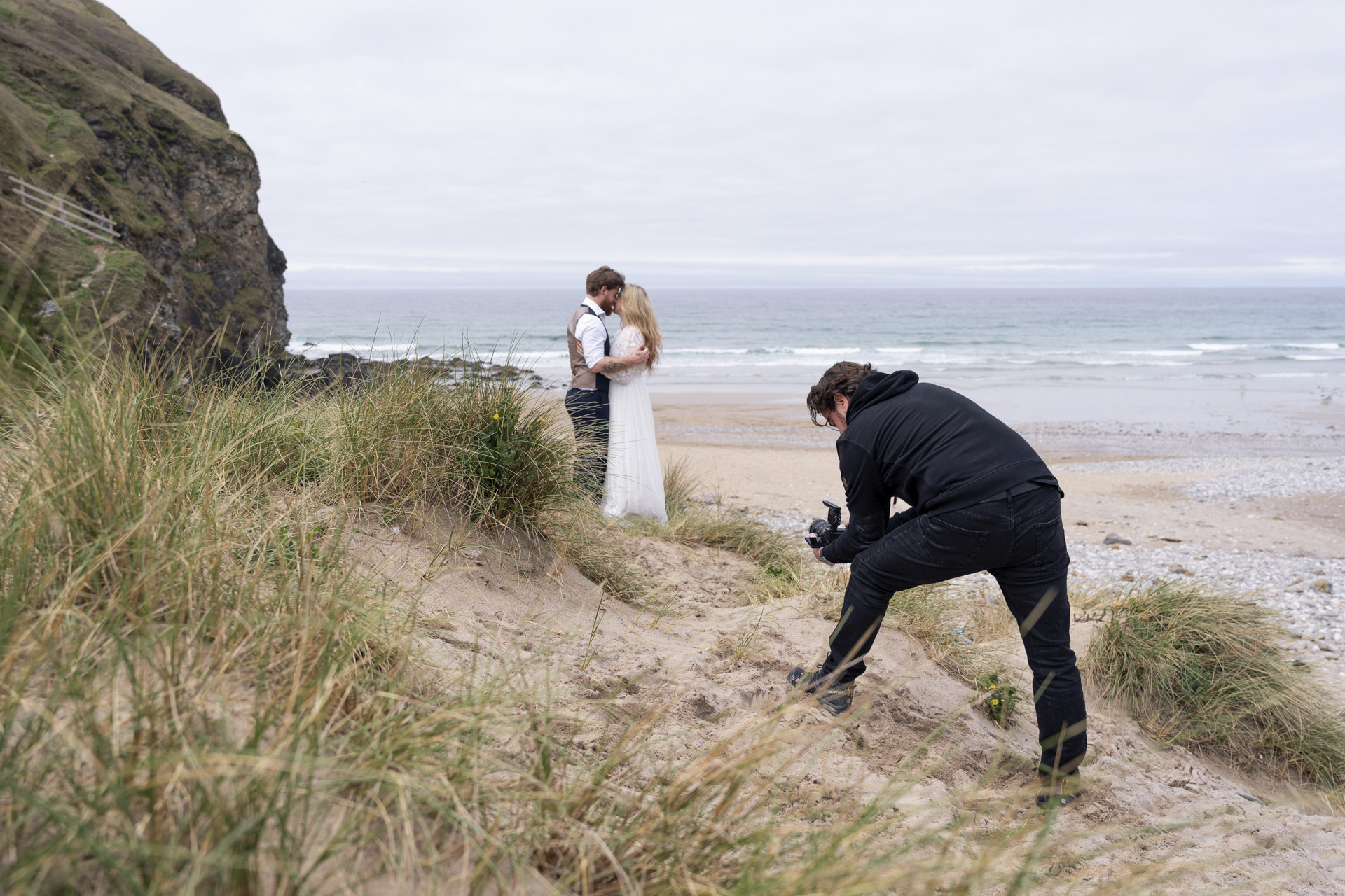 It was fantastic to be out in the field with such a compact and lightweight full frame camera body that offered such unbelievable features. For both shoots I captured 4K footage shot at 50fps because I knew that I would want to zoom in and slow down a lot of the footage. I also shot in 10-bit 4:2:2 so I could maximise the grading process in post-production. Probably the most impressive features for me were those relating to in camera stabilisation - I barely stood still for the shoots and found myself scrambling over rocks and pools of water following the couple. Being able to hold the camera and lens with just one hand was also incredibly liberating. I also love the addition of Multiple Face Recognition where the camera automatically adjusts the focus/depth of field to ensure that all the people in the frame are in focus - even smoothly adjusting when someone new enters the scene!