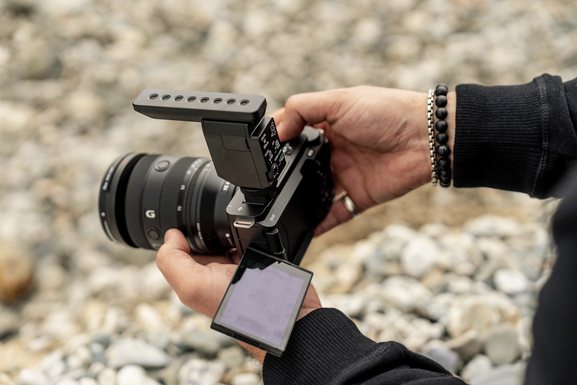 Filming on location in variable conditions without a viewfinder on the Sony ZV-E1 meant that I often couldn’t see clearly what I was capturing - particularly when I had the camera above eye level or right down on the sand or at the water’s edge. I completely trust the combination of Sony cameras and lenses in conjunction with the autofocus system. This is such a massive leap forward in filming technique that I can’t stress enough! My two most favourite autofocus features are Zone and Eye AF. I use Zone for all of the wider-angle shots in conjunction with the tracking feature and then the camera automatically picks up and tracks the subject’s eyes for the closer up work. This meant that I was able to film a huge variety of shots very quickly which gave me a lot of choice back in the studio for the edit.