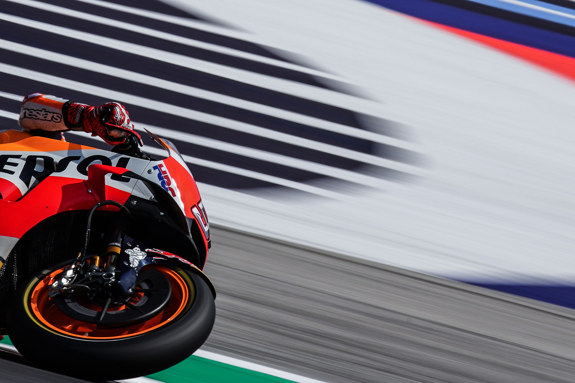 Like the sport of Moto GP racing itself, the key to taking a great image is positioning and timing. Alejandro explains, “you have to use the right technique and you need a clear idea about what you want to express. For me, the bikes are all about speed and I want to show that in my images. To be able to do that it’s vital that you are in the right place, and then the technique needs to be perfect.”