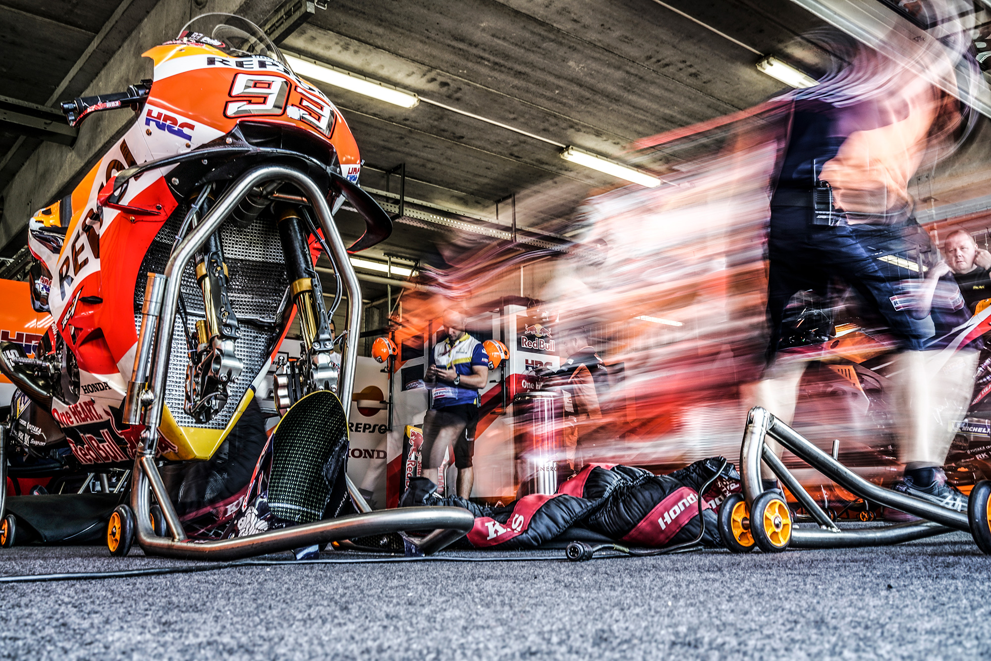 Whilst Alejandro’s racing images capture the twists and turns on the track, he also offers an insight in to what happens off the track - everything from the frantic split-second action in the pit lane to riders in a meditative state, eyes shut, recounting every turn of the track before they sit on their bike. Once again, knowledge of the sport and knowing exactly when and where to be is the key to capturing these moments.