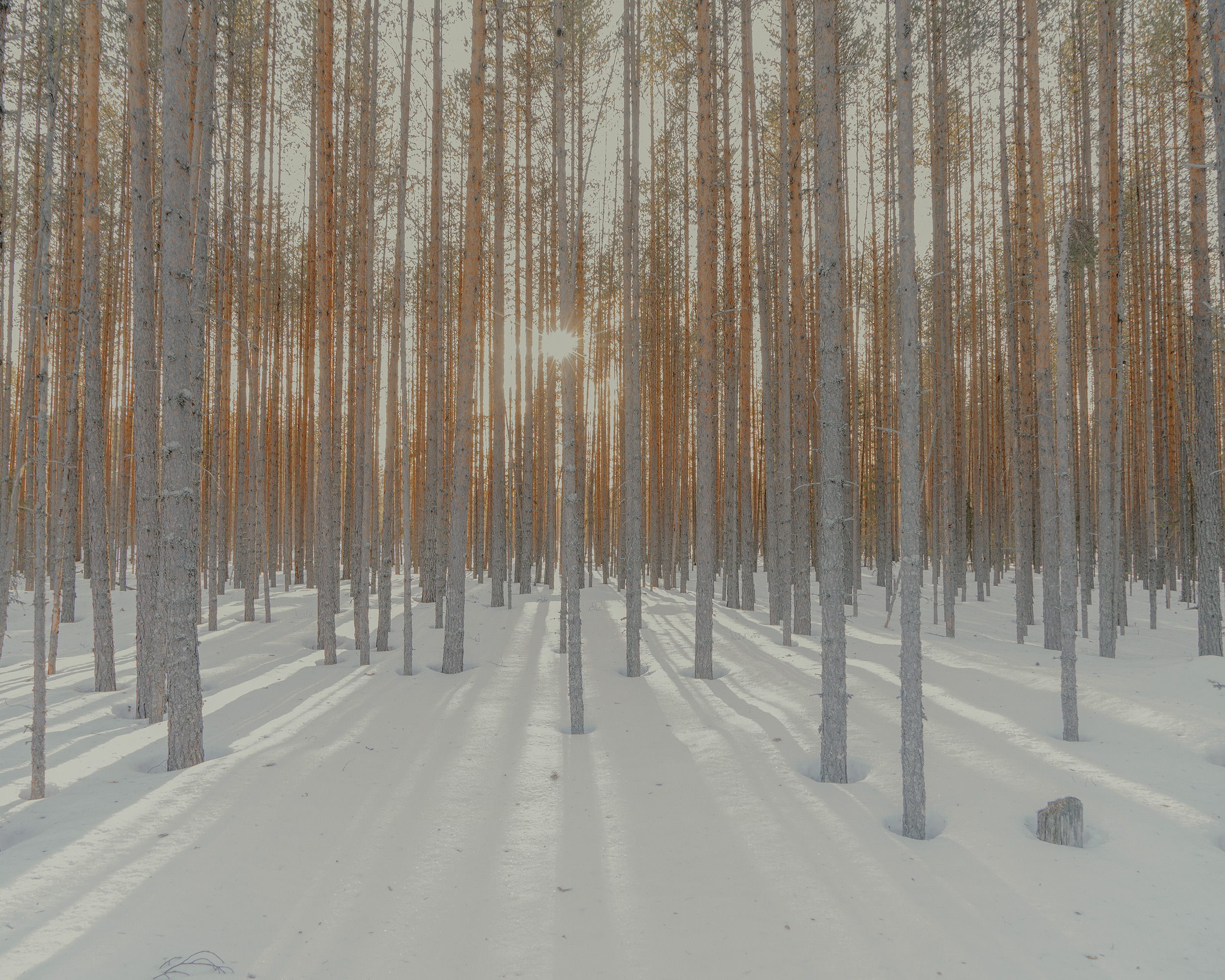 I shot the image at sunset, as the light poured through the trees. I shot handheld with a Sony Alpha 7R IV and the FE 24-70mm f/4 ZA OSS lens. The aperture of the lens was stopped down and I used as low a sensitivity setting as possible. The intention was to ensure a good depth of field along with strong sharpness of the trees and the snow’s texture. The light across the trees also forced me to use a long shutter speed. Nevertheless, the image is almost perfectly sharp