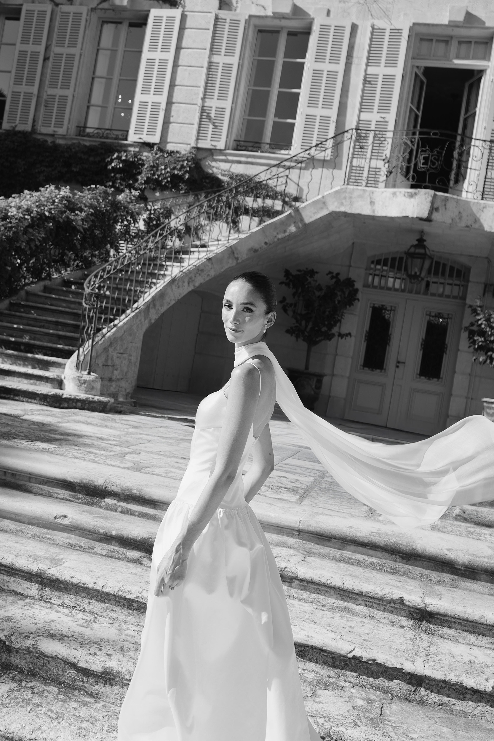 One of the first steps was a portrait session in the Château’s tennis court. “I loved working in that space,” he says, “because the lines and surface of the court make it clean and dynamic, but also quirky and fun. But while the backgrounds of the Château are amazing, they can’t overwhelm the story. We shot at 50mm, which lets you see the surroundings in a natural way.”