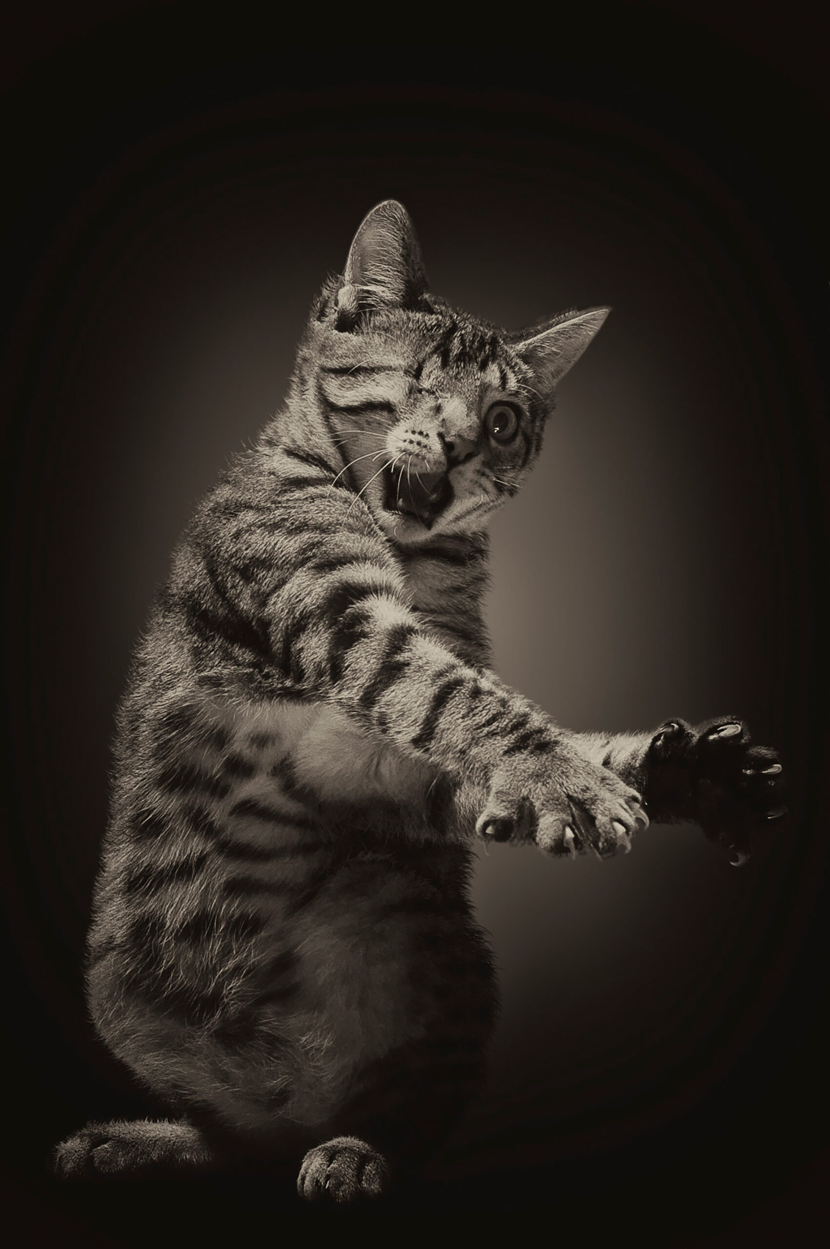 Denys then transformed the image into black and white and added a slight sepia tone, explaining, “in my opinion, the monochrome image adds charm and mystery, and it emphasises the character of the cat without being distracted by colour”.