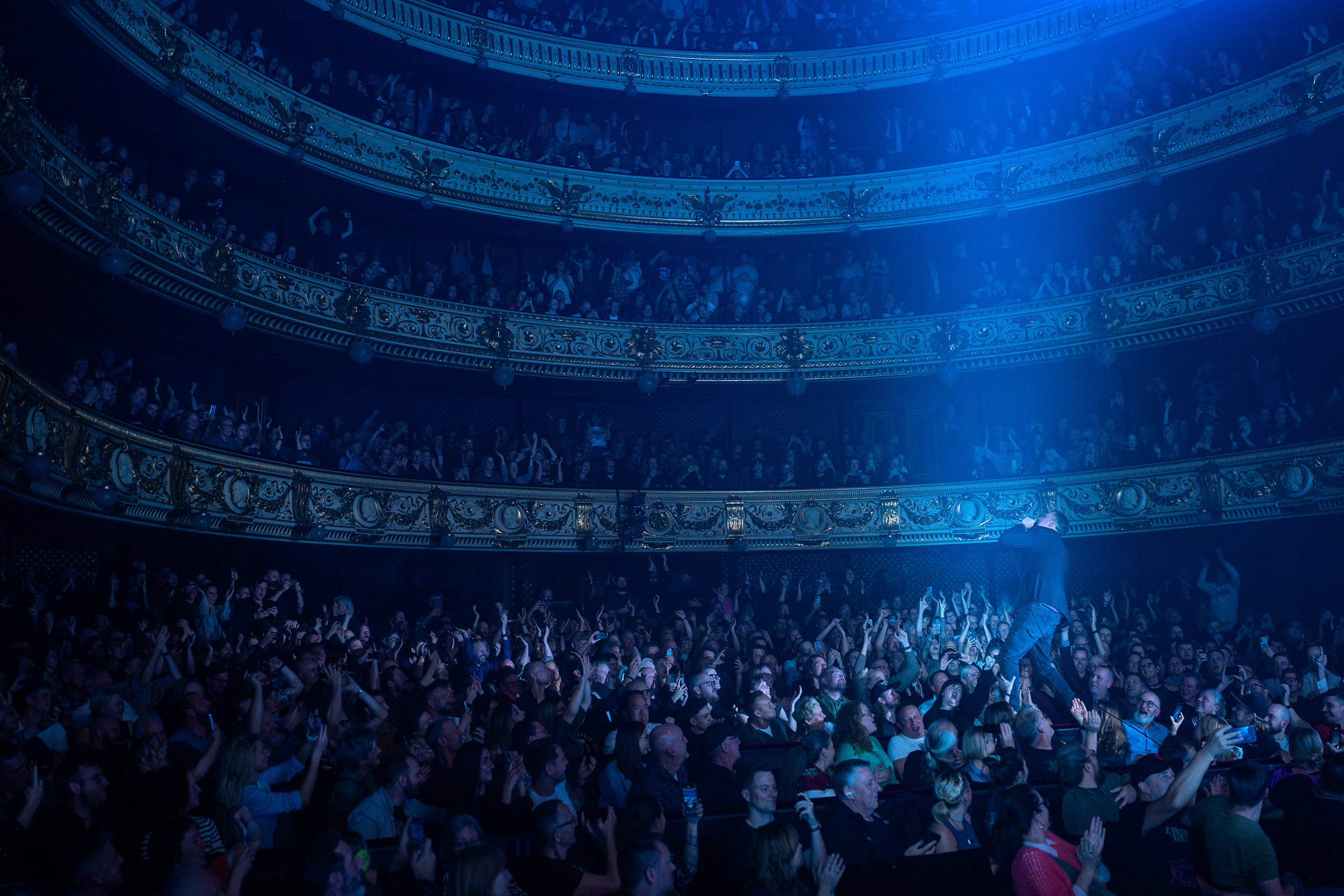singer crowd surfing during a gig © Morten Rygaard | Sony α9 III + FE 28-70mm f/2 GM | 1/500 @ f/2.0, ISO 1000