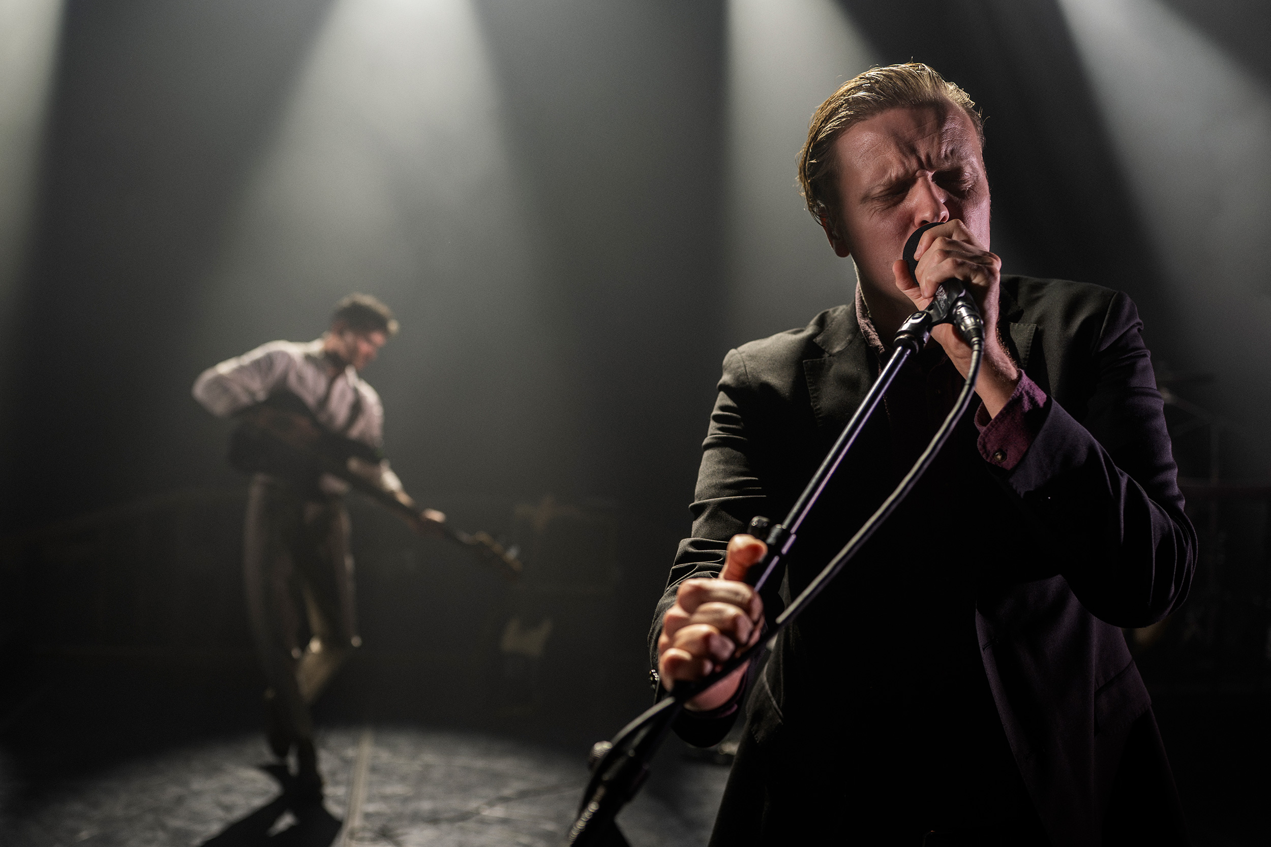 singer on stage with guitarist behind him © Morten Rygaard | Sony α9 III + FE 28-70mm f/2 GM | 1/500 @ f/2.0, ISO 160