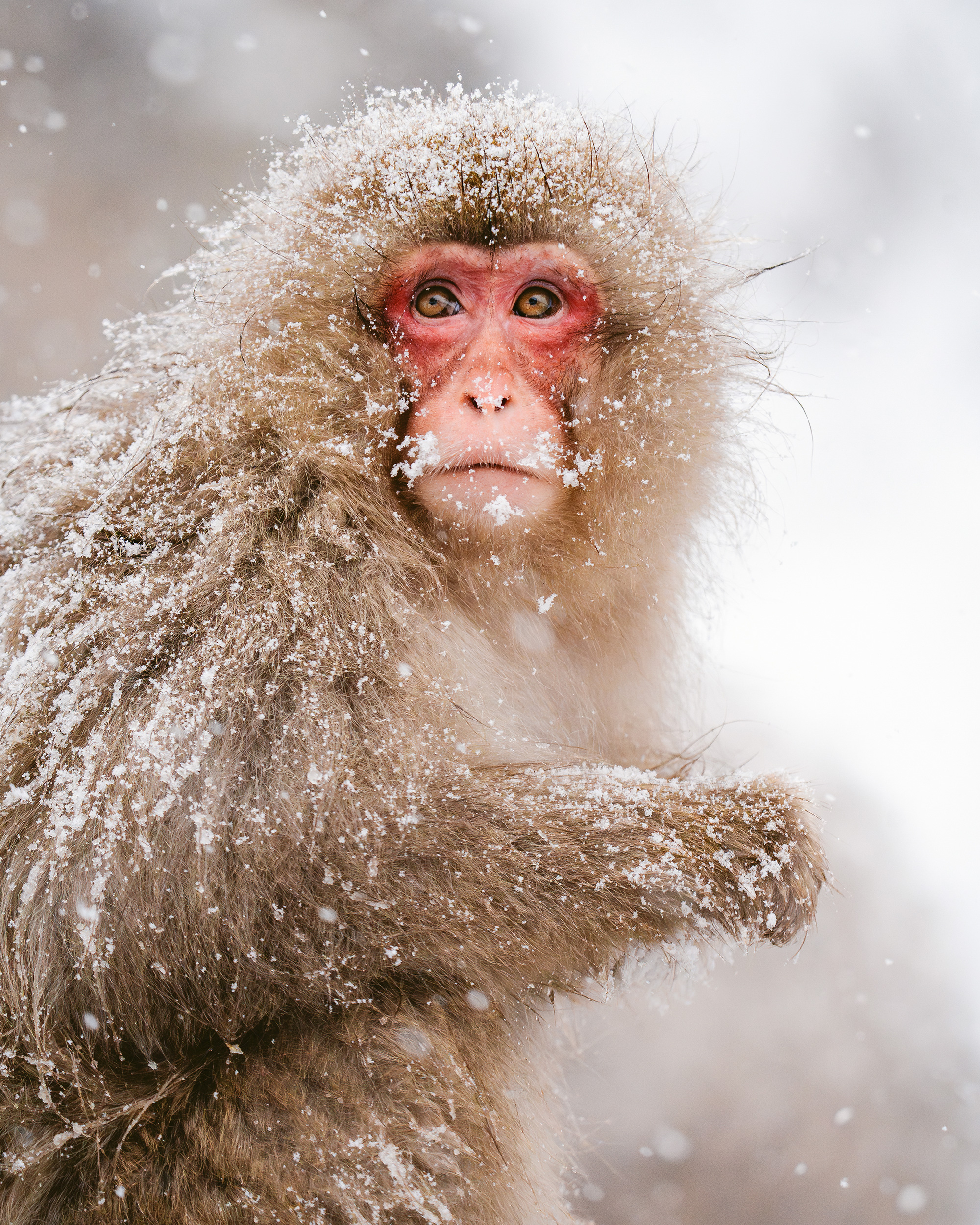 Jessica herself had to brace challenging conditions, but her perseverance paid off. “I spent several days with the snow monkeys, and on the last day, we had an unexpected snowstorm. The conditions were tough, but capturing the monkeys in this extraordinary setting was a moment I had dreamed of.”
