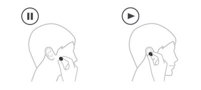 Just take the earbuds off and the music stops. Built-in sensors know when you're wearing them, so simply put the earbuds back on and the music starts again.